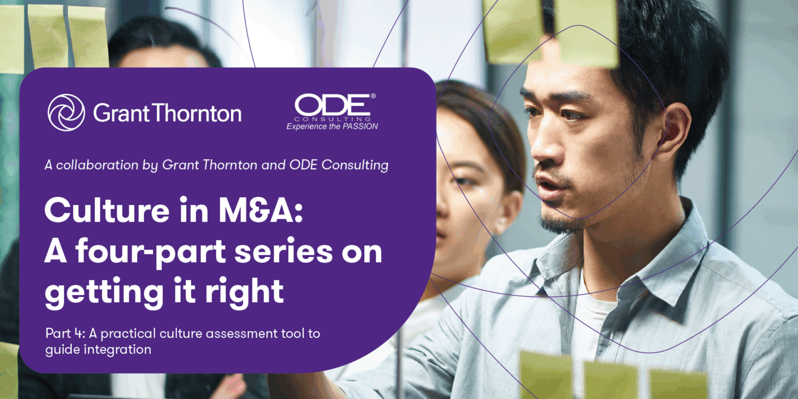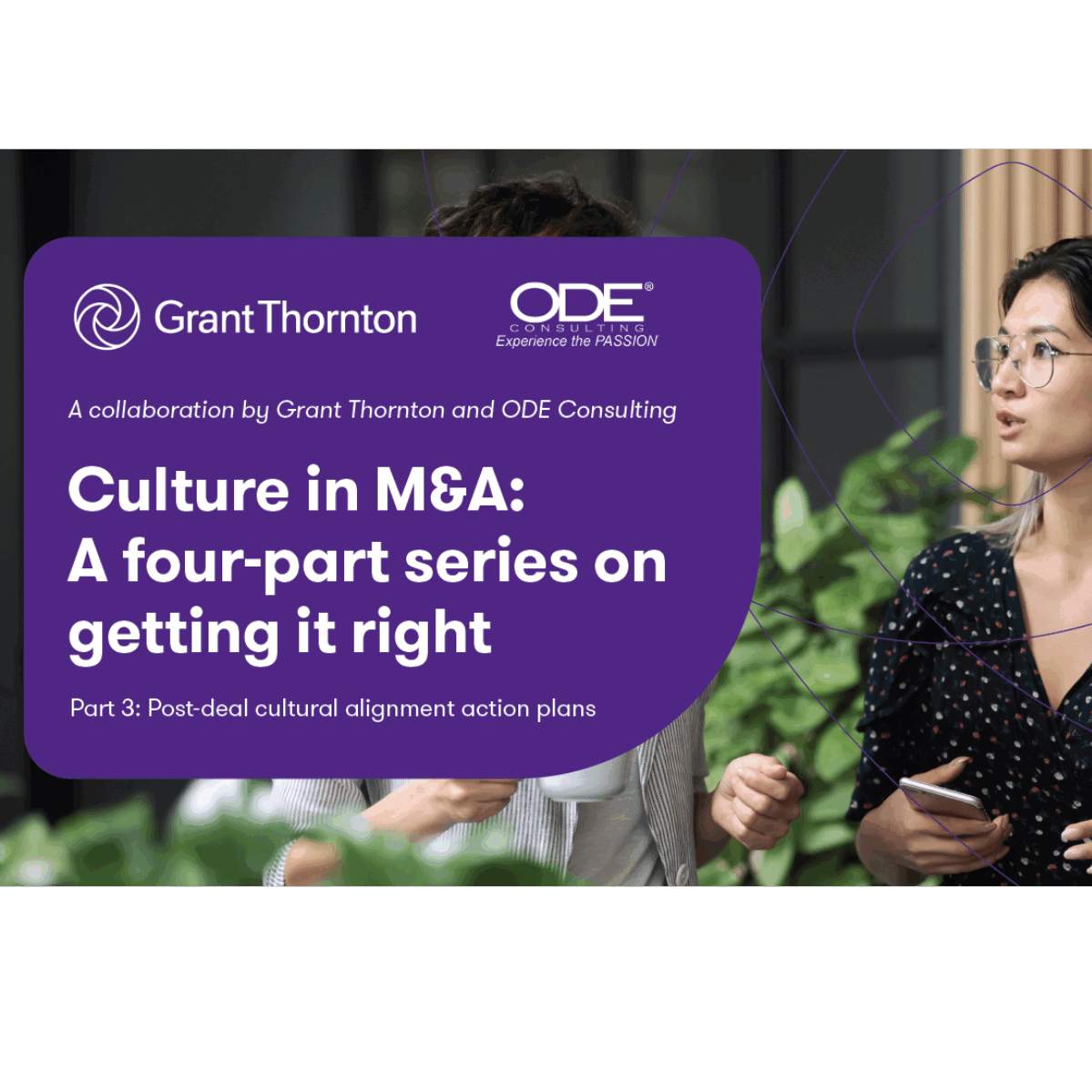 They are also about people, values and culture. In Part 3 of our Culture in M&A series with Grant Thornton, we explore how deliberate and structured cultural alignment action plans can support a more seamless integration, help retain key talent, and ensure that the newly combined organisation moves forward with a shared strategic focus.